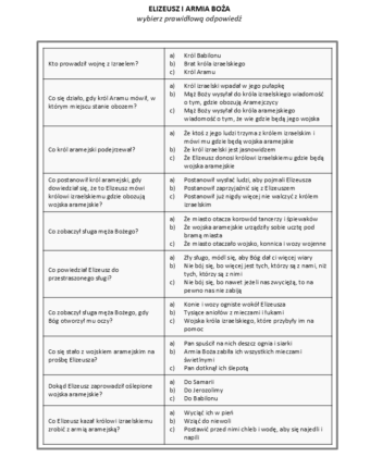 Elizeusz i armia Boża - wybierz prawidłową odpowiedź