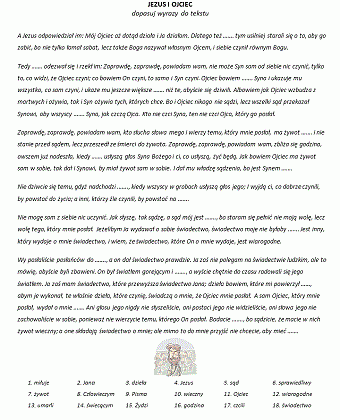 Jezus i Ojciec - dopasuj wyrazy do tekstu