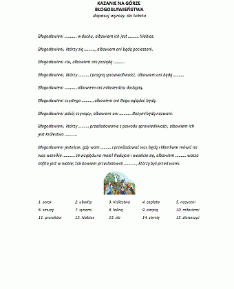Kazanie na górze - błogosławieństwa - dopasuj wyrazy do tekstu