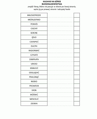 Kazanie na górze - błogosławieństwa - odczytaj hasło