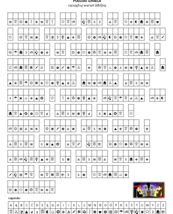 Zadanie polega na rozszyfrowaniu tekstu biblijnego przy pomocy podanej legendy. Zadanie przygotowane jest dla dzieci i młodzieży w wieku 5-16 lat.